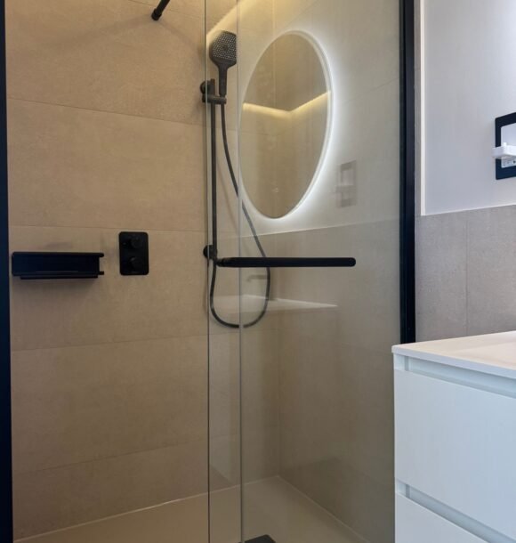 A shower Room of ‘simplicity and minimalism’ was our brief. This came from our client who wanted her bedroom divided to accommodate a lovely space, for first thing in the morning and last thing at night.