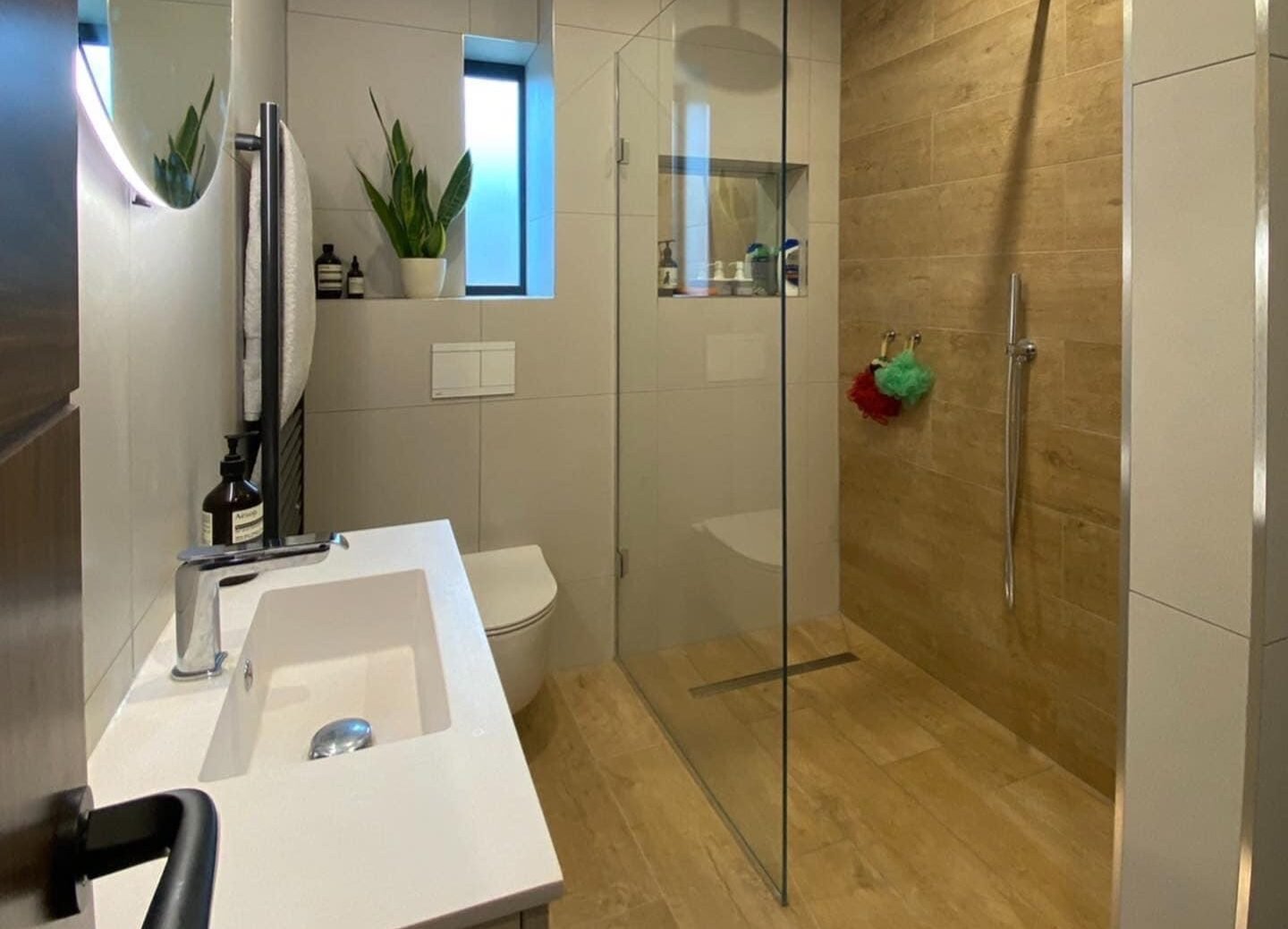 The Wet Room is fully tiled in a Scandinavian theme and coupled with timeless high quality products. Underfloor heating, dimmable lighting, lots of storage, and even a heated shower seat makes this a room to love and experience.