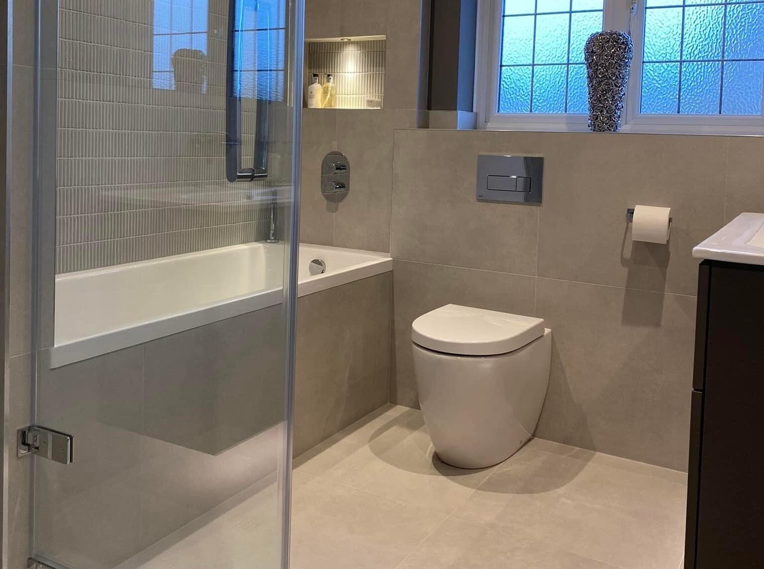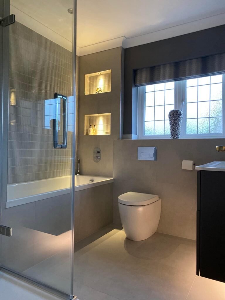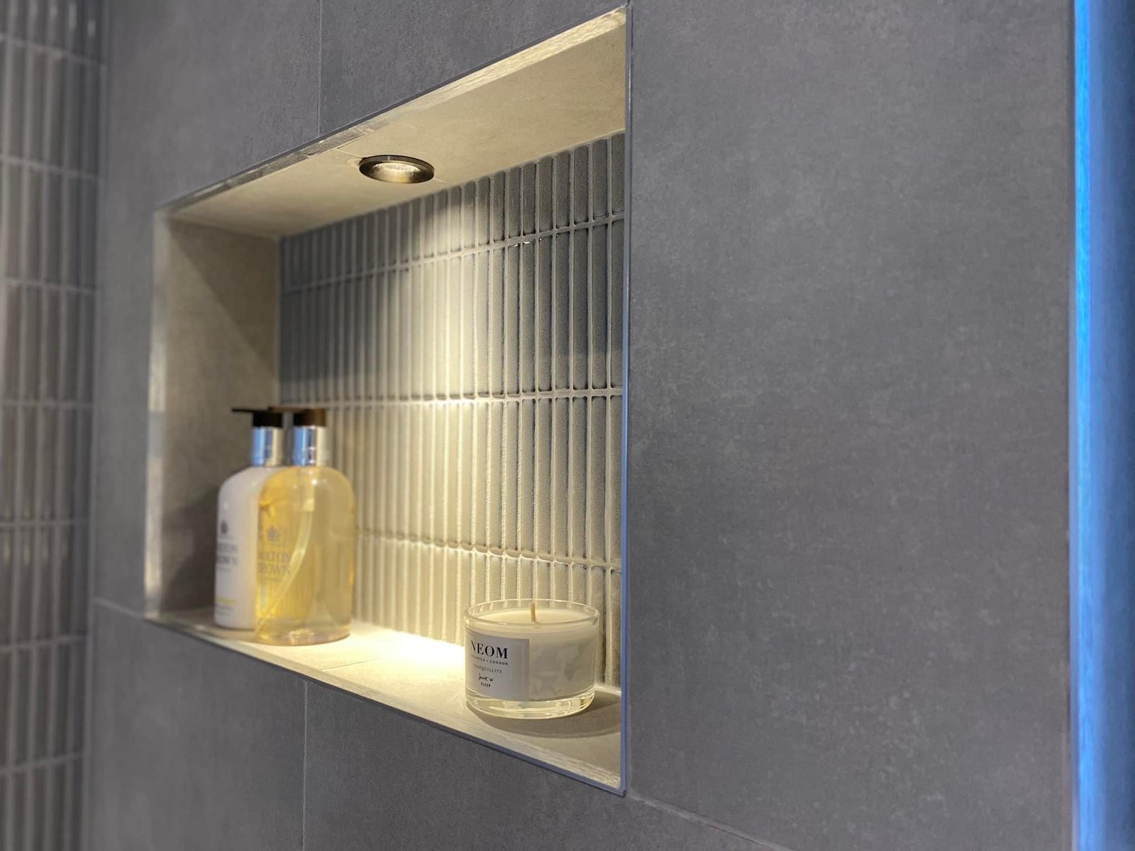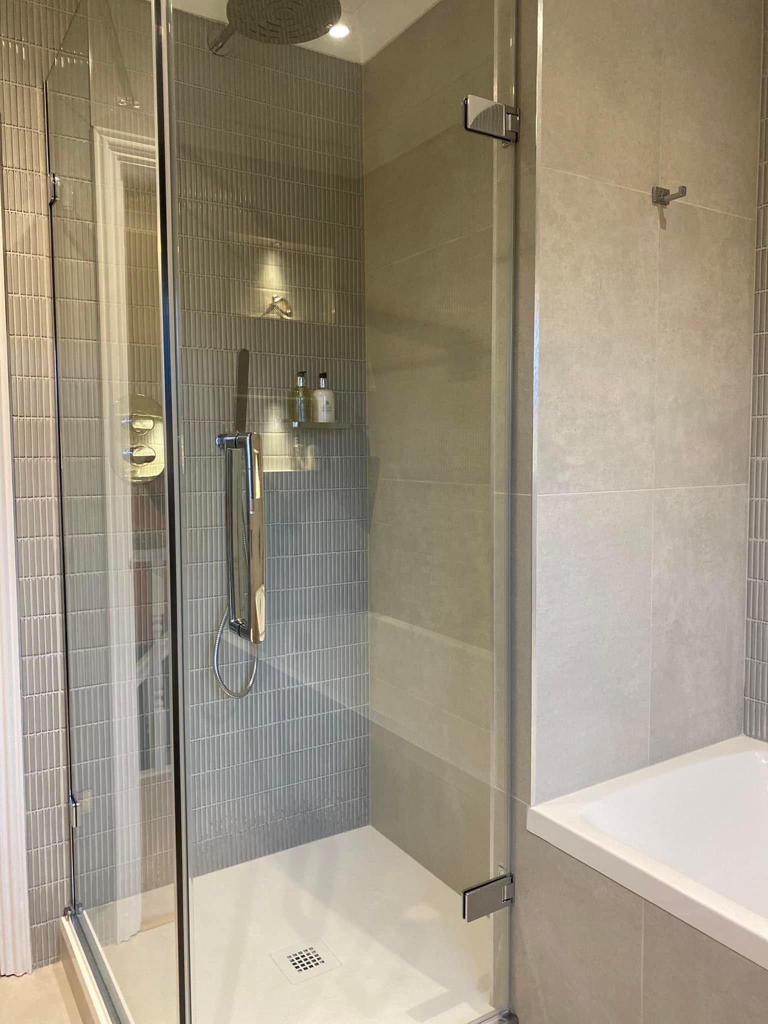 Leading high quality bathroom & showering products, rectified porcelain tiles, mosaics areas with dimmable lighting, bespoke frameless shower enclosure, underfloor heating, and a bespoke size mirror with anti-mist pads £8,120