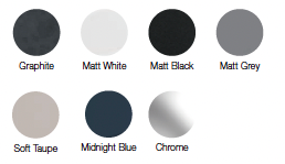 Available in seven colours, Fabio heated towel rails feature a mix of classic and trend-led colours to make the radiator a key part of your bathroom design. Soft Taupe and Midnight Blue also co-ordinate with furniture ranges for a complementary finish.