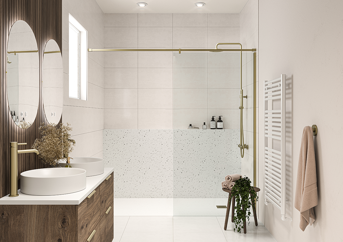 Our brief was to remove the original tired 1990’s Travertine bathroom and turn it into the most minimal, stylish, and functional Shower Room.